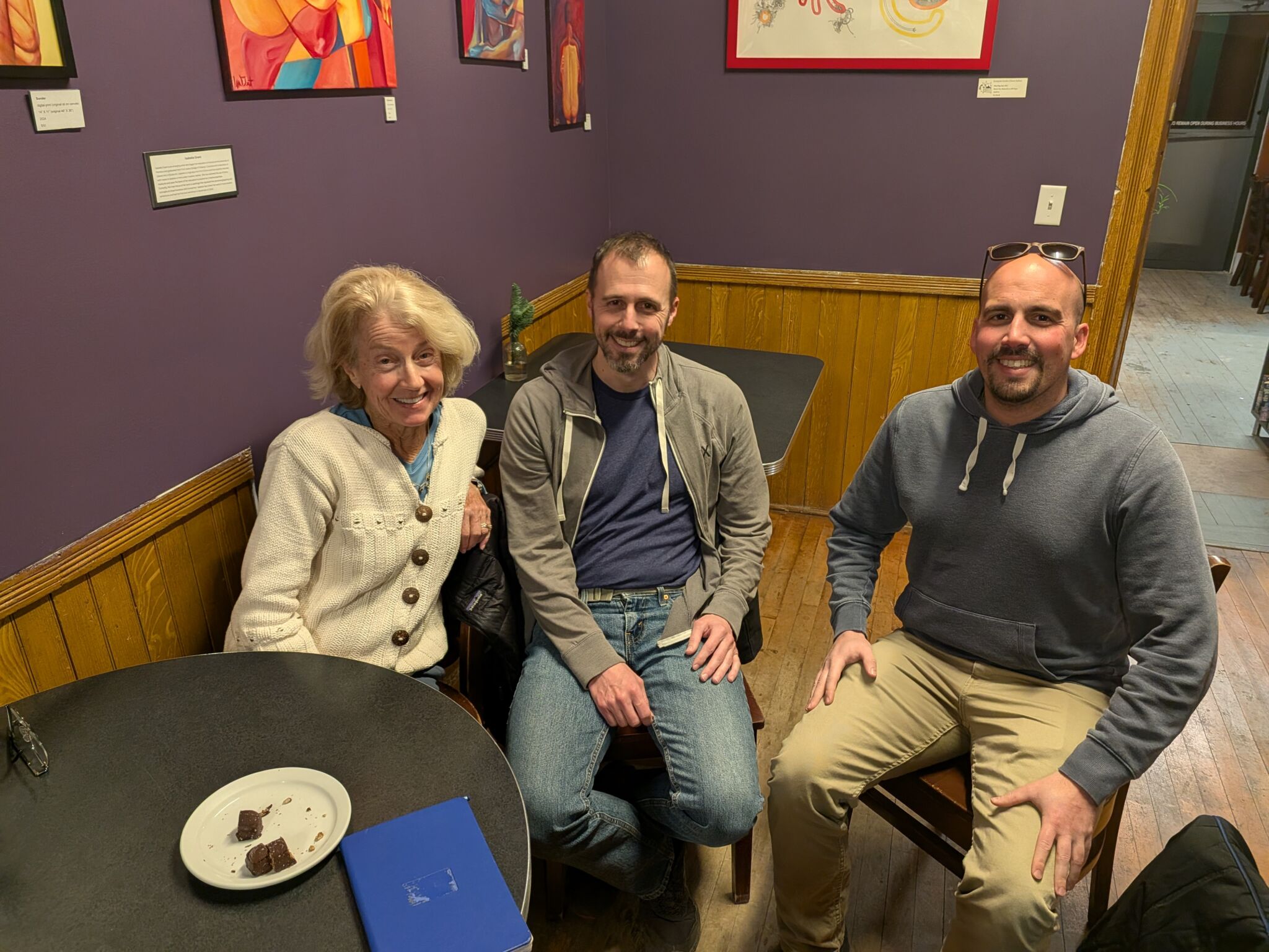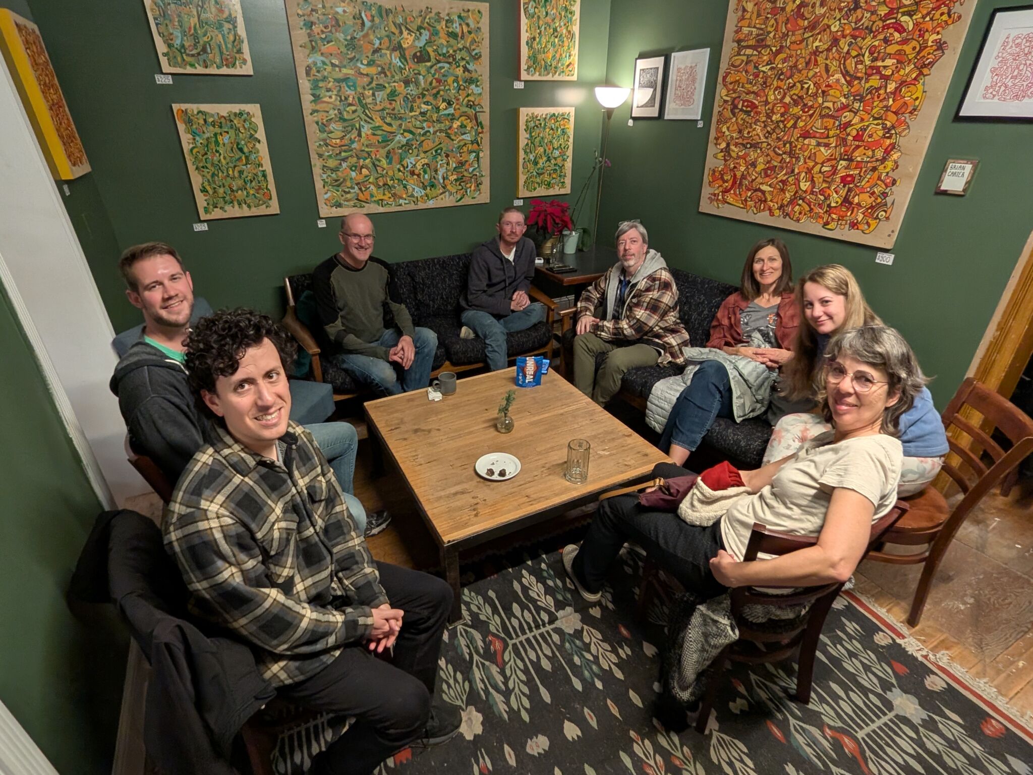 Brian, miembro del grupo durante muchísimos años que se mudó hace algún tiempo, está en la ciudad para visitar a un amigo.