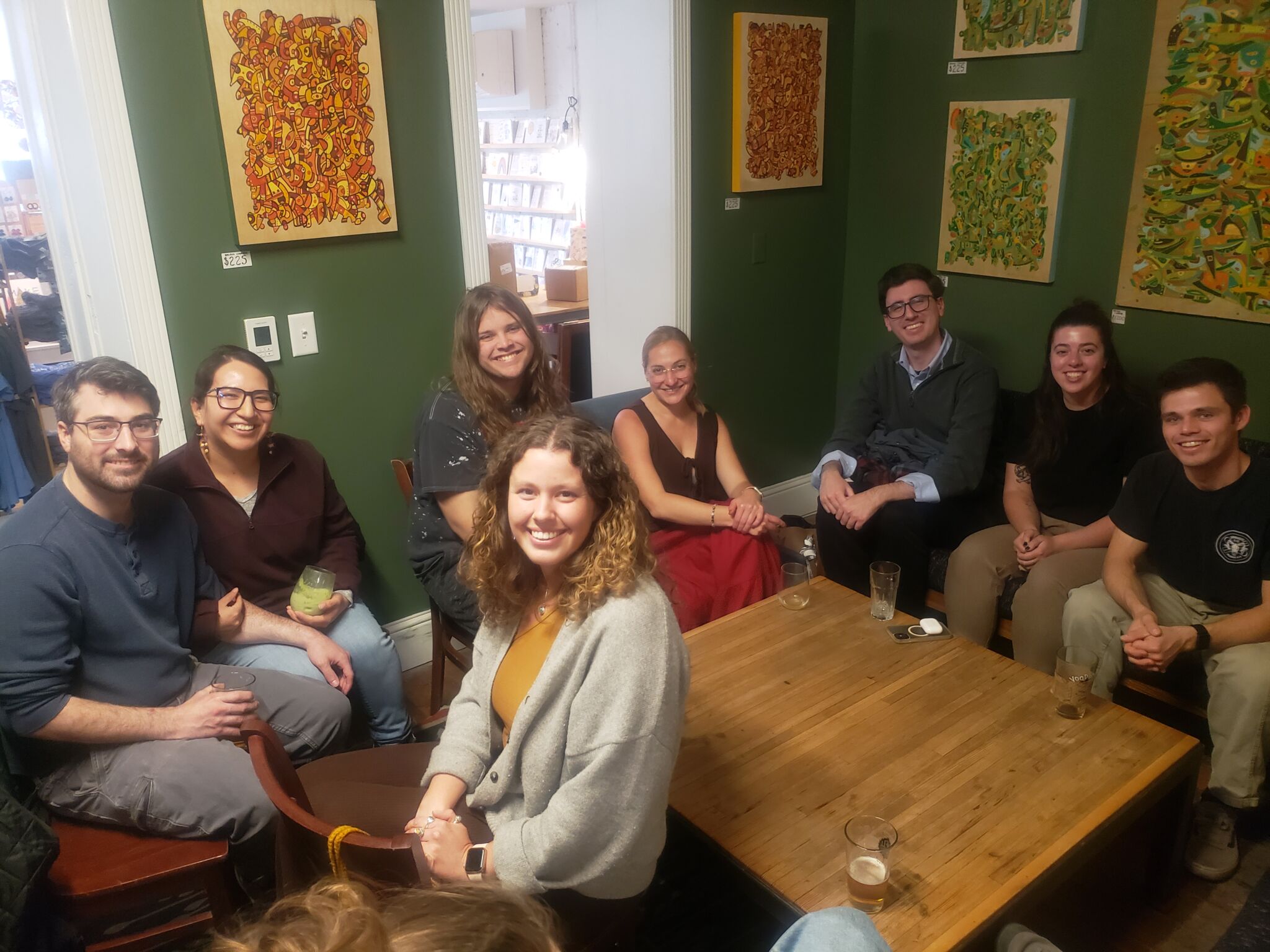 Tuvimos mucha gente hoy, así que nos sentamos en varios grupos.