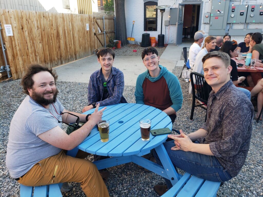 Eduardo, Grant, Maggie (nueva) y Arial compartieron una mesa.  Maggie pasó casi un año en los alrededores de Buenos Aires Argentina… va a ser muy interesante conocer más de los detalles de su vida allí.